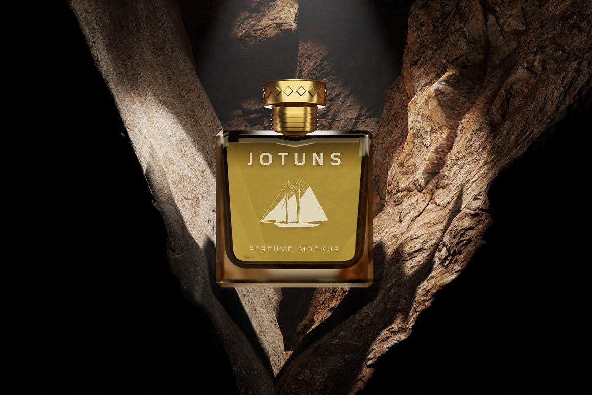 Realistic Perfume Mockup In The Cave